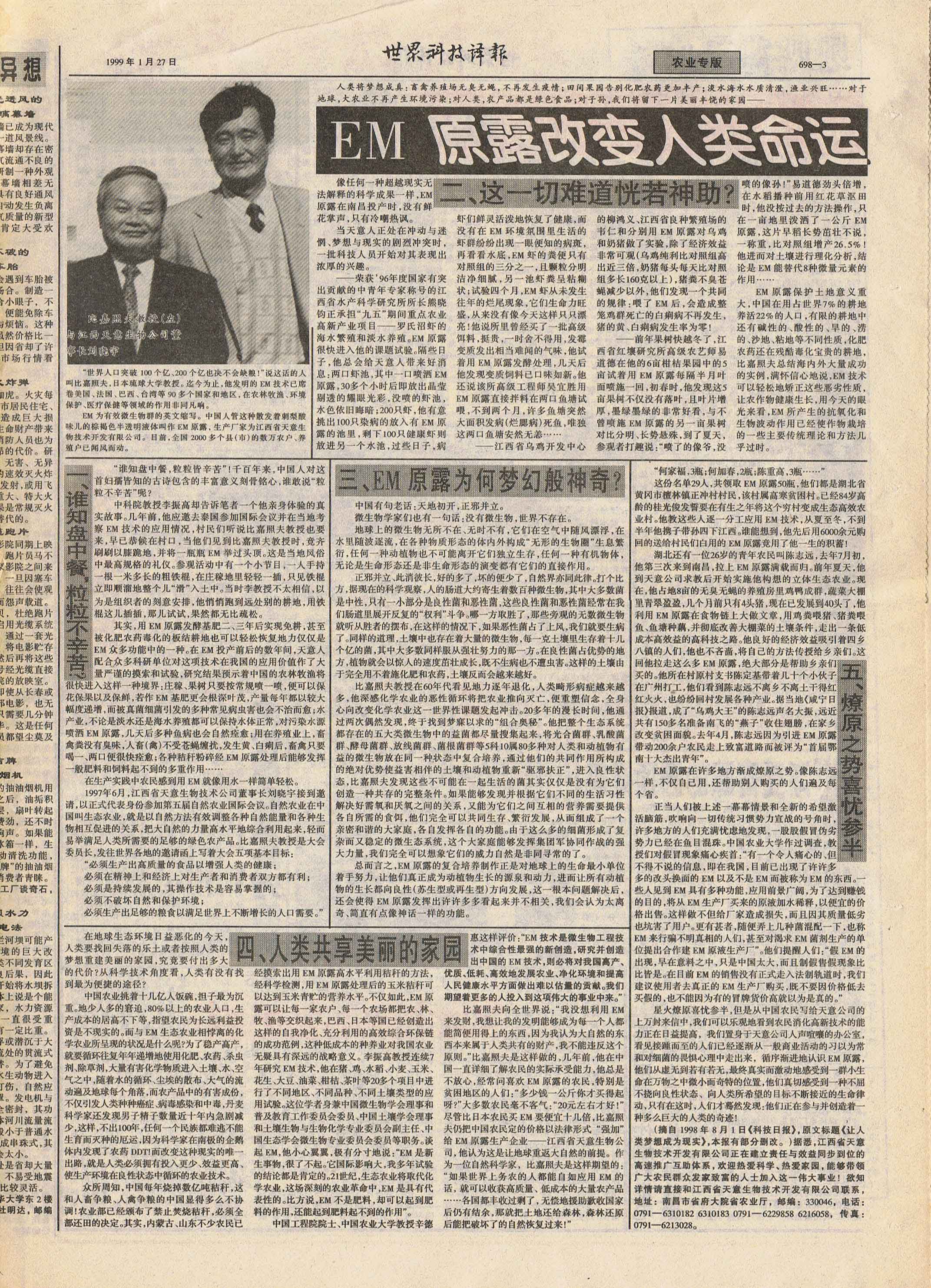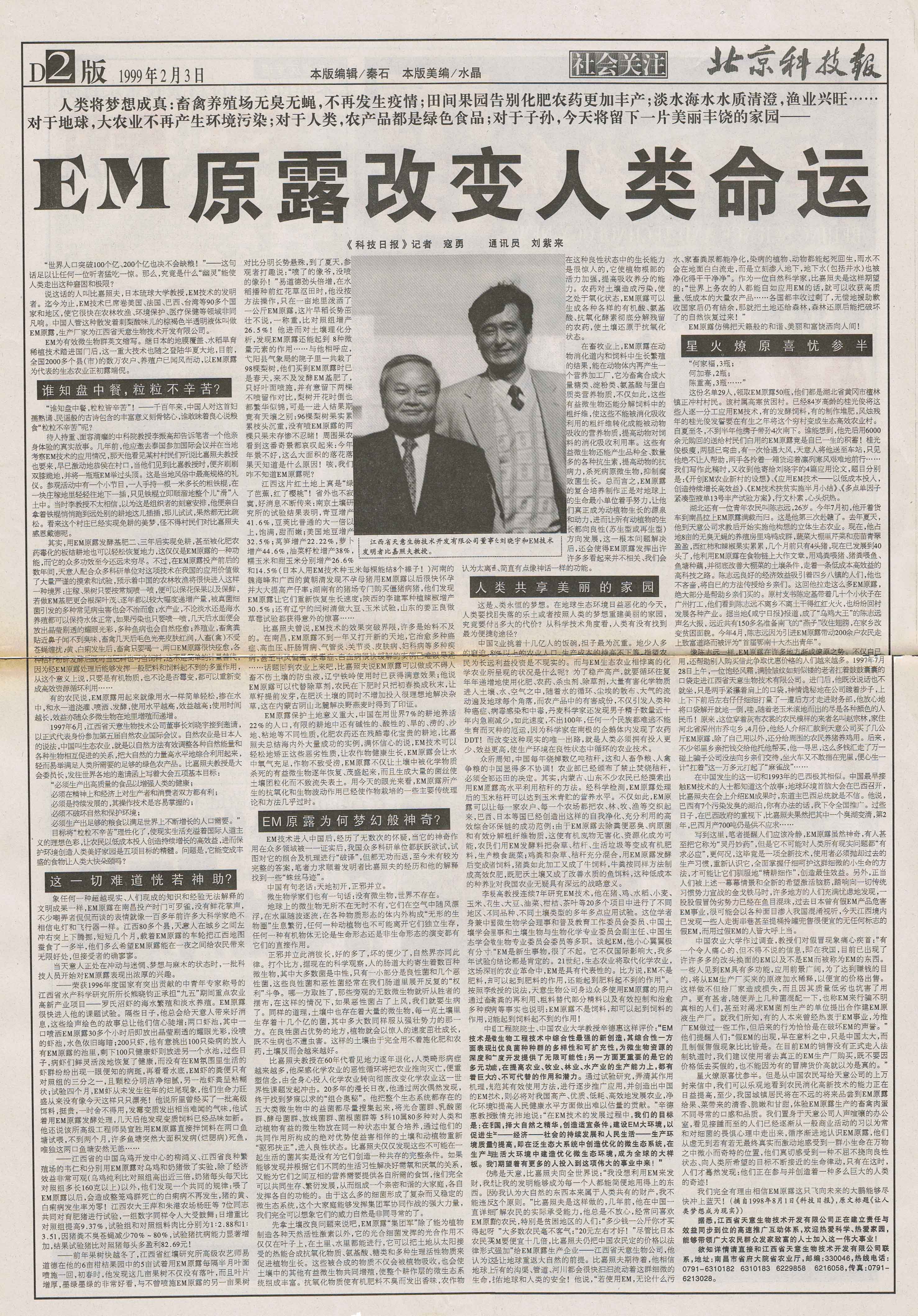 北京科技報(bào):EM原露改變?nèi)祟惷\(yùn)